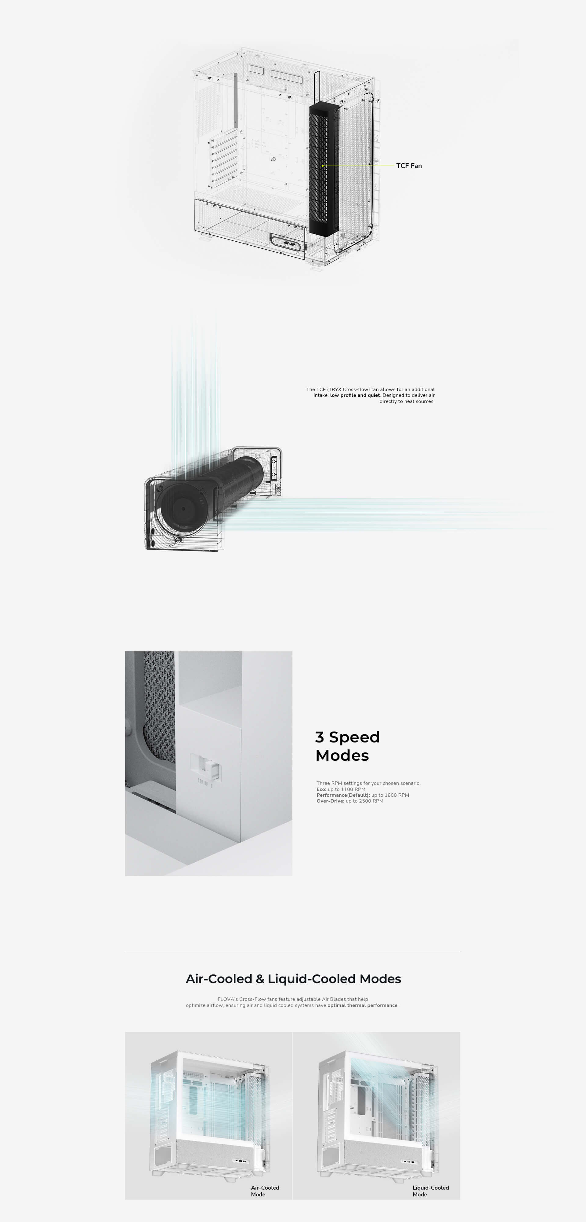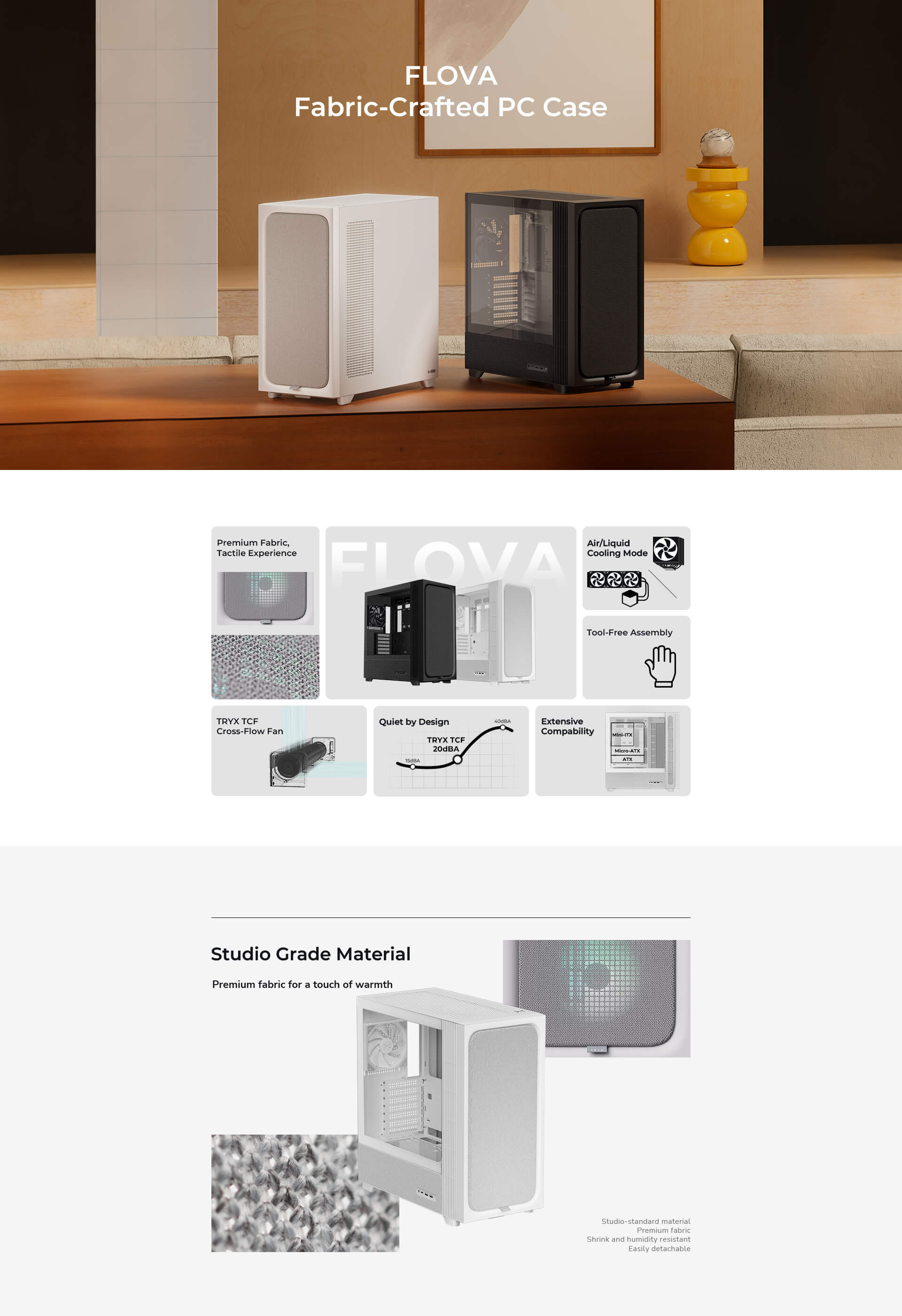 FLOVA F50 Mid-Tower ATX Case, Fabric Finish, TCF Cross-Flow Fan.