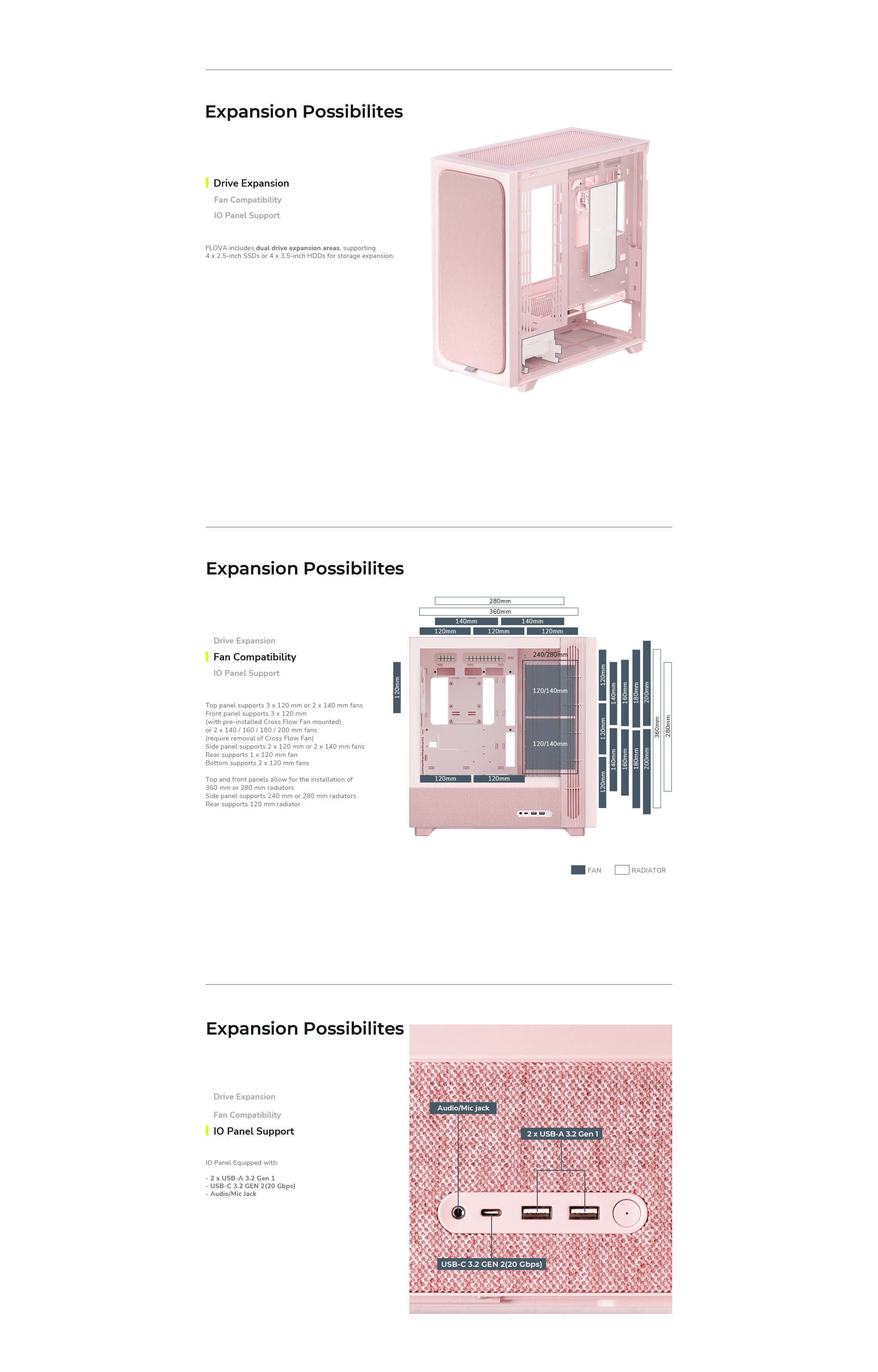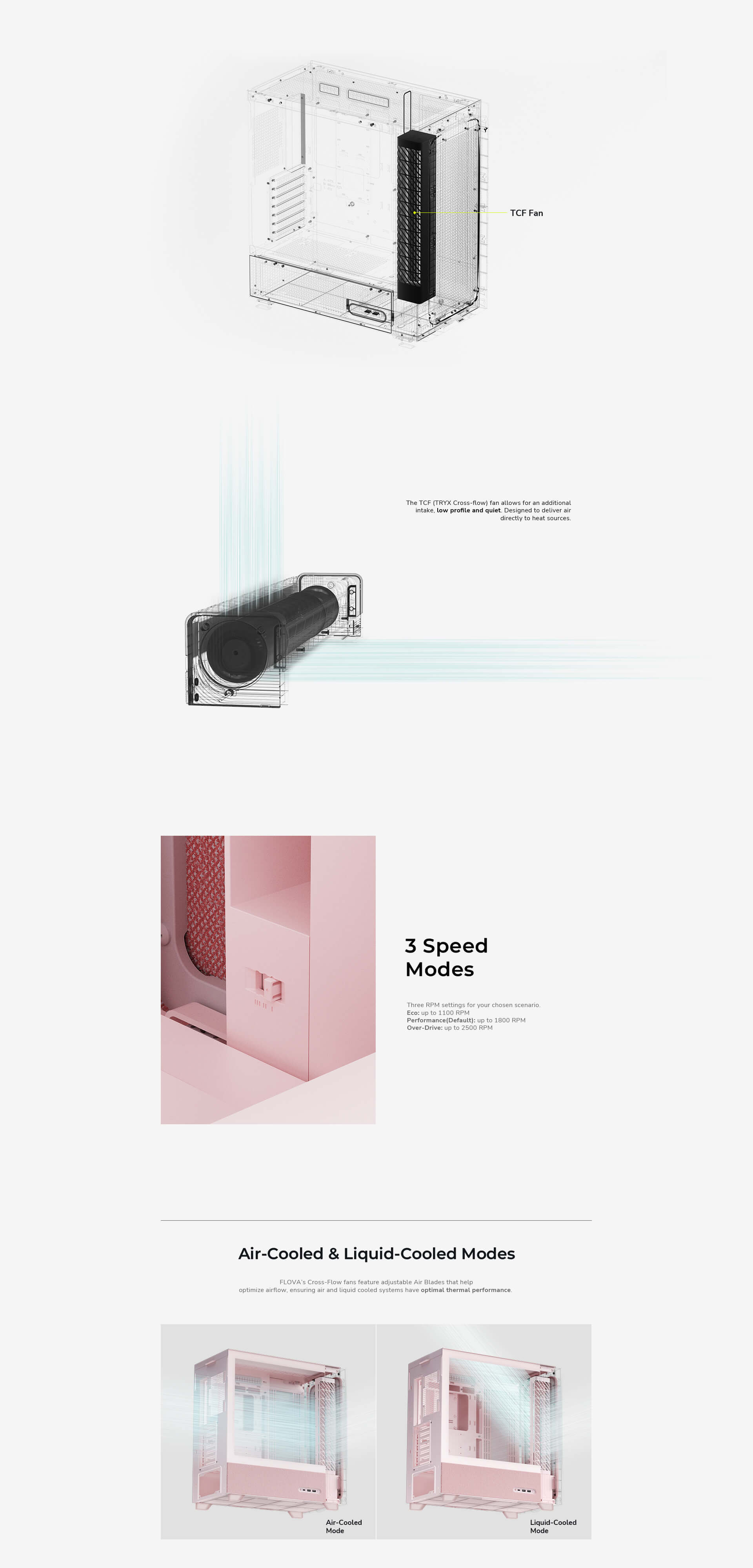 FLOVA F50 Mid-Tower ATX Case, Fabric Finish, TCF Cross-Flow Fan.